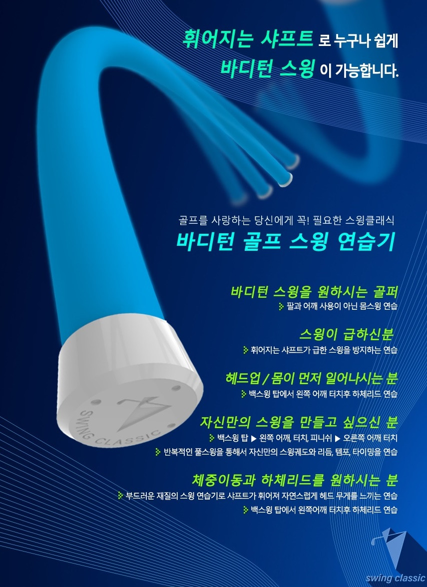 스윙클래식 바디턴 골프 연습기 휘어지는 샤프트 하체리드 헤드업 실내 골프용품