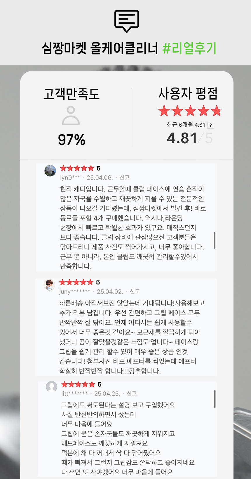 심짱마켓 "올케어클리너" 제품은 EWG 1등급입니다.