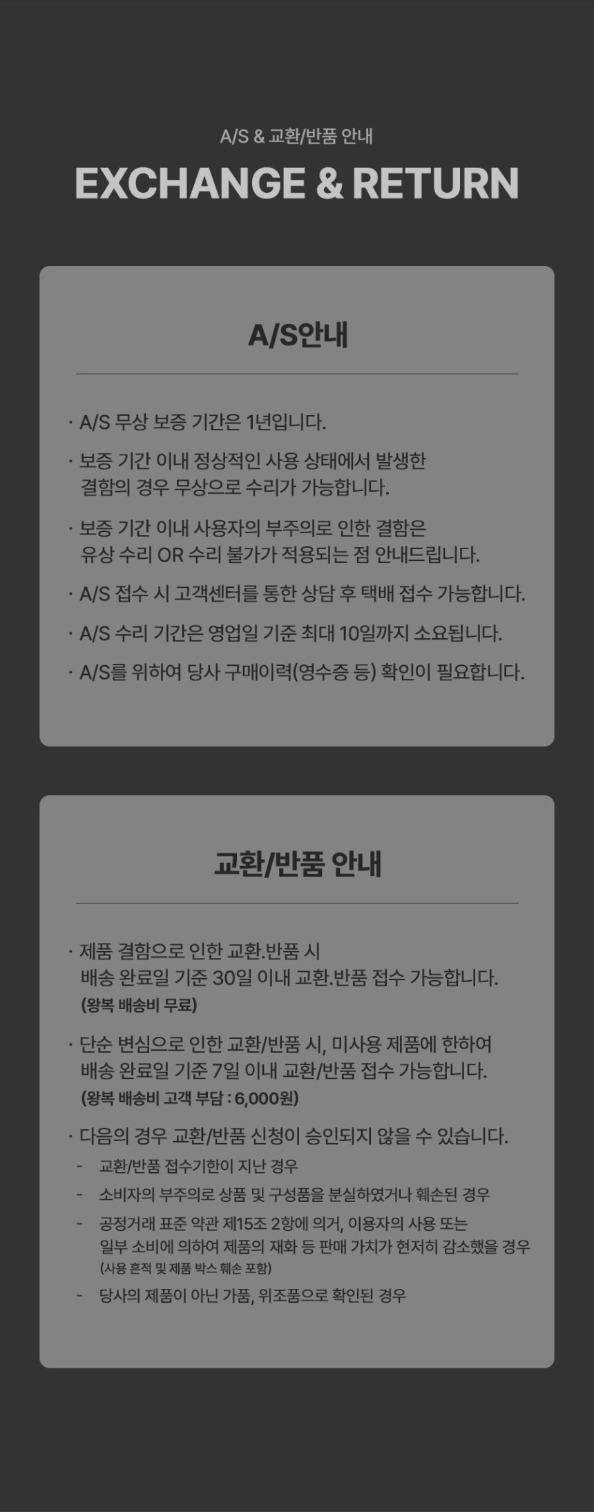 A/S 책임자와 전화번호